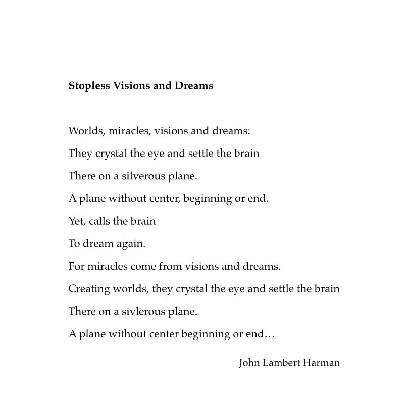 Stopless Visions And Dreams was a project prepared for the Time Capsule, in collaboration with Kulturby 1996 (Kulturby 96, Tidskapselprojektet). It consisted of music, performance and a sculpture all based on the poem Stopless Visions And Dreams.